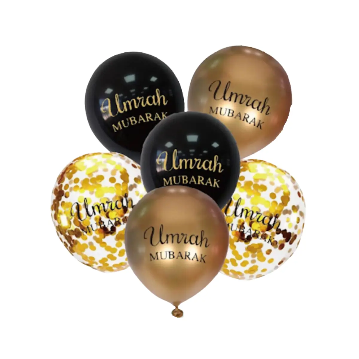 - Couleurs : Pack de 6 ballons : 2 or, 2 noir, 2 confettisLatex