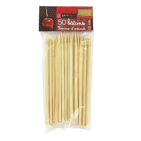 Note du fabricant : +/- 50 bâtons en bois pour pommes d’amour. Conformes aux normes de contact alimentaire.