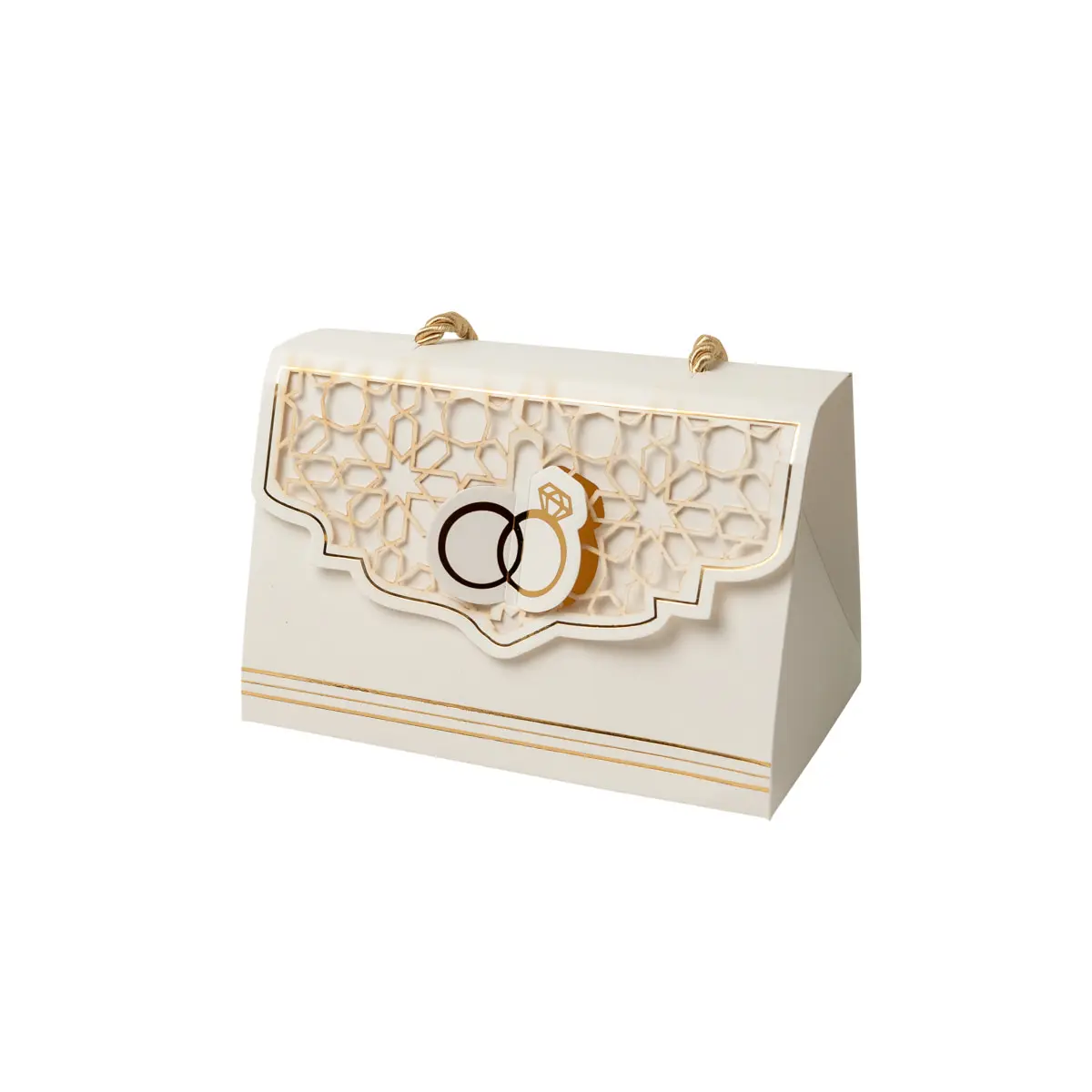 Avec sa couleur crème délicate, ses finitions dorées et son motif d’inspiration orientale, elle apporte une touche de prestige et de tradition à vos cadeaux gourmands.