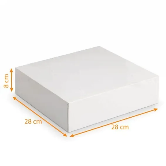 28×28 cm sur hauteur de 8 cm vendue par lot de 3 boites blanches pour préparation alimentaire