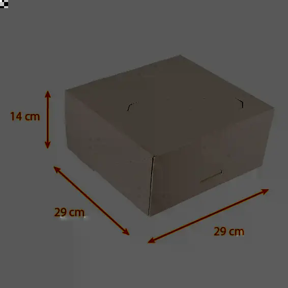 Dimensions d’une boite pâtissière : 29 x 29 cm/ Hauteur 11 cm ou 14 cm.