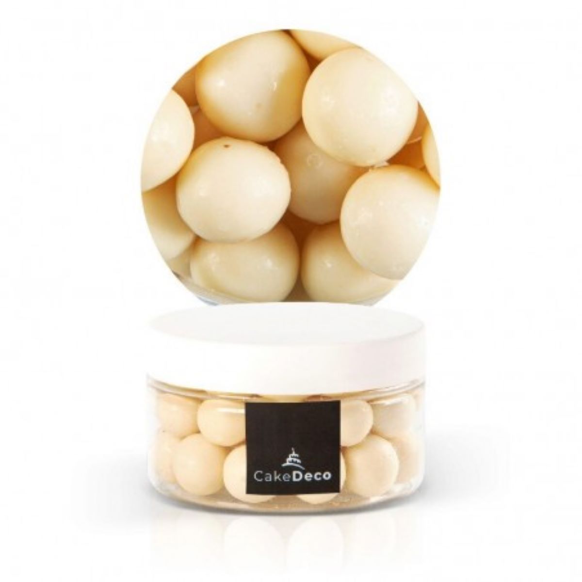 Un lot de 50 grammes de boules crispies en chocolat blanc à poser sur vos plus belles réalisations pâtissières ou pour apporter une touche gourmande à votre table