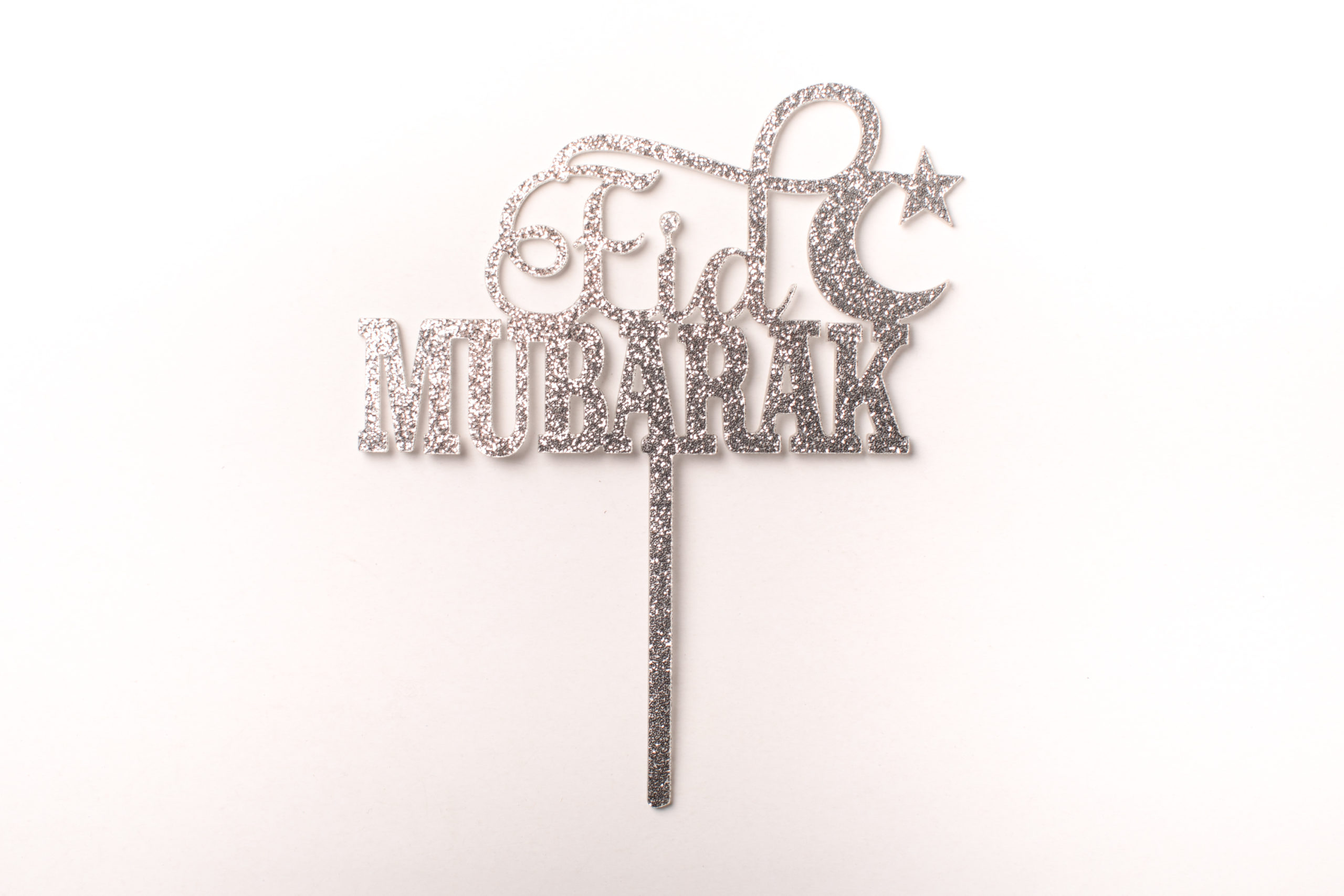 Accueil Thèmes Aïd Cake topper Aid Moubarak Argent Kamar