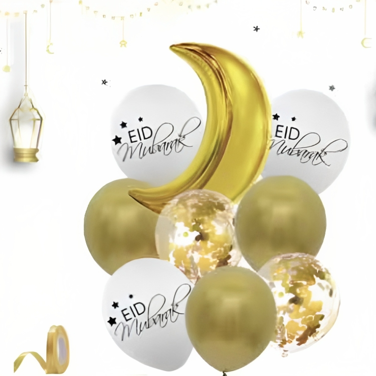Plongez dans la magie de l’Aïd avec notre composition de ballons spéciale, mettant en scène une lune éclatante !
