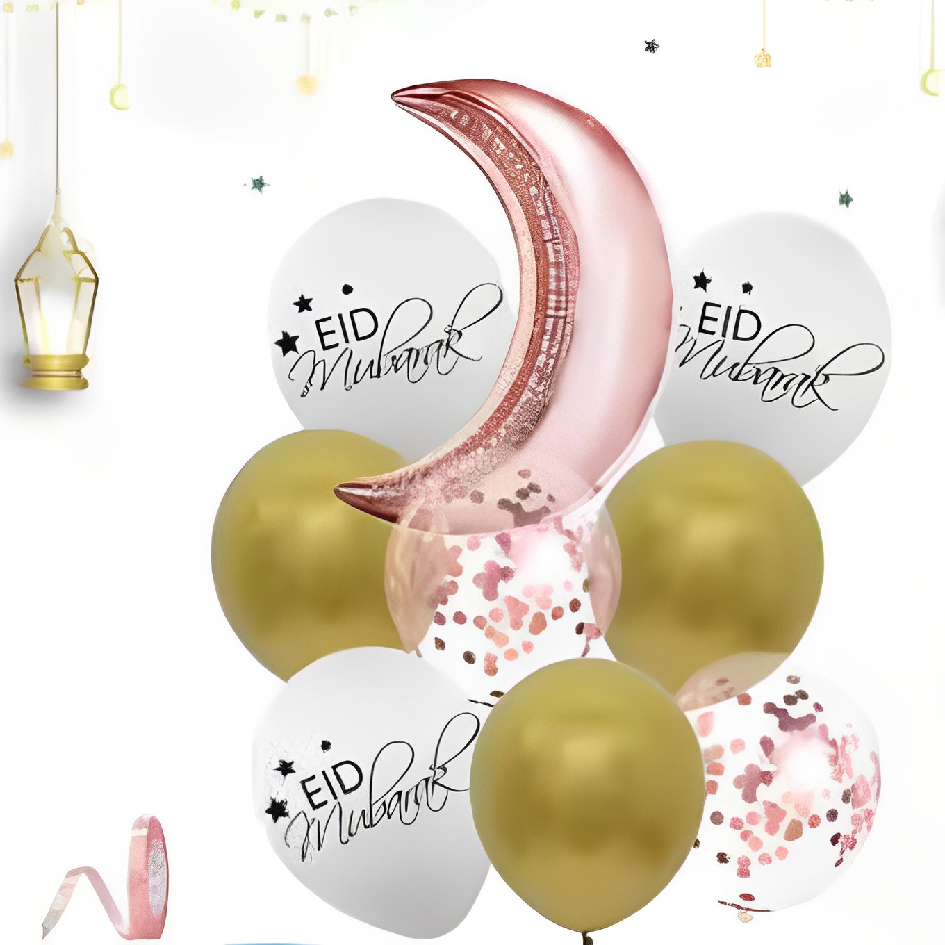 Plongez dans la magie de l’Aïd avec notre composition de ballons spéciale, mettant en scène une lune éclatante !