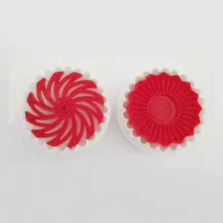 Découpoir à double face et 2 motifs pour laisser une belle empreinte de tourbillon ou de soleil sur vos pâtes.