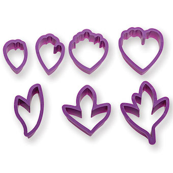 Kit de 7 découpoirs en plastique pour réaliser une splendide pivoine avec des feuilles. Composé de 4 découpoirs pour le bourgeon et de 3 découpoirs pour le pétale.