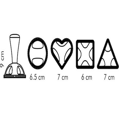 Découpoirs pour la préparation classique et originale des pâtes italiennes ravioli en forme de cercle, carré, triangle ou cœur, muni d’un manche universel facilement interchangeable.