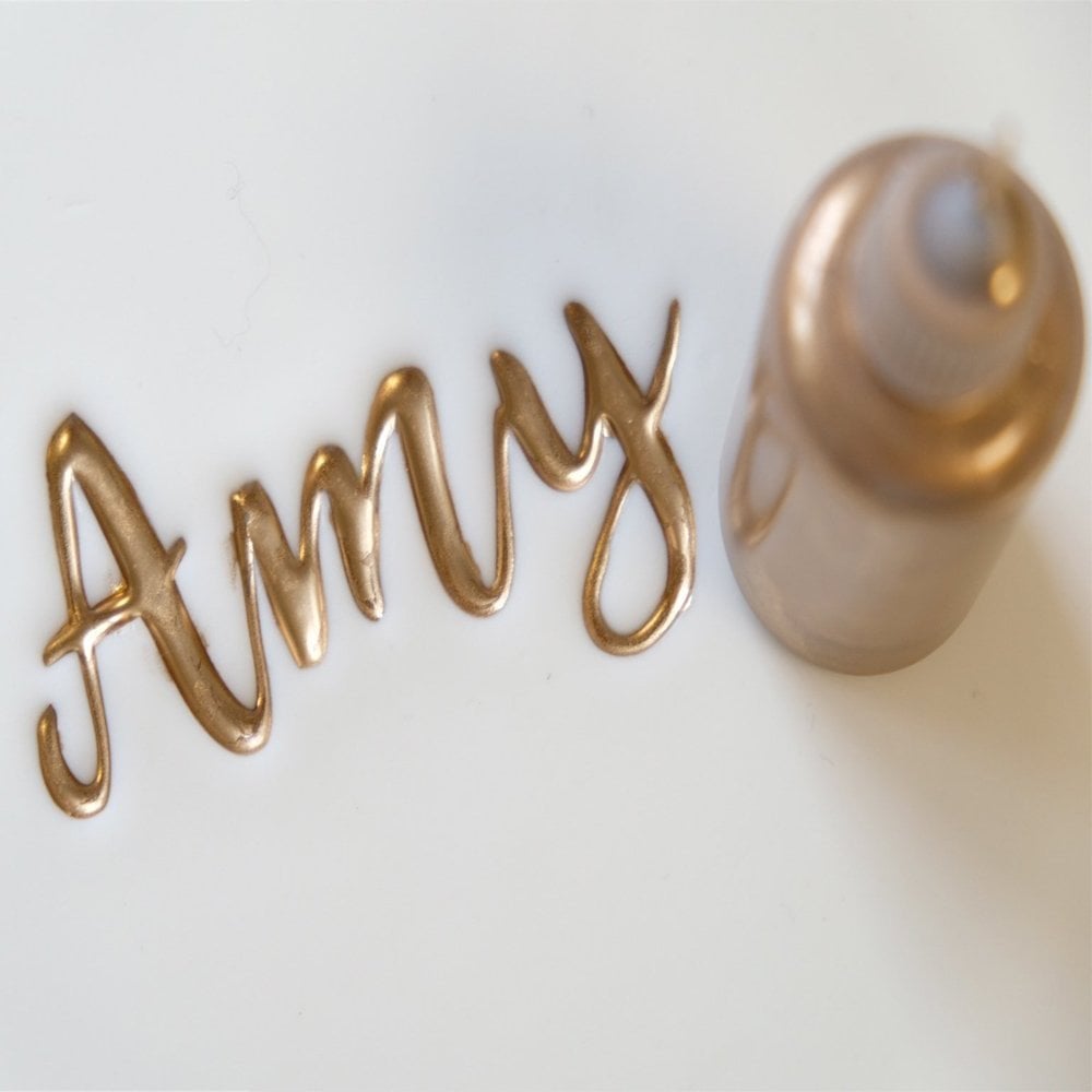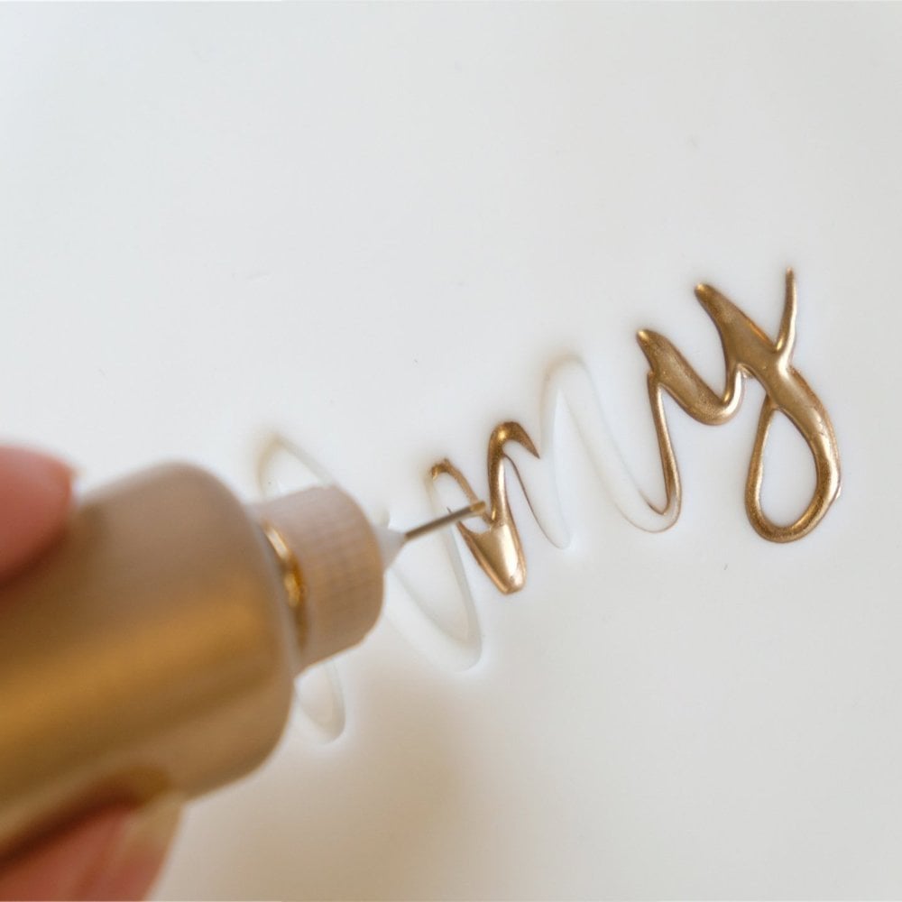 Embossez votre biscuit profondément, versez votre peinture dans les bouteilles à l’aide d’un petit pichet ou d’un entonnoir (fonctionne mieux avec un mélange de poussière / alcool) et pressez soigneusement la peinture de la buse dans votre lettrage. Regardez le remplissage de la peinture, le gaufrage et laissez la peinture sécher. Une fois terminé, placez votre couvercle sur vos bouteilles Perfect Pour éviter le gaspillage afin que votre peinture soit prête pour votre prochain projet.