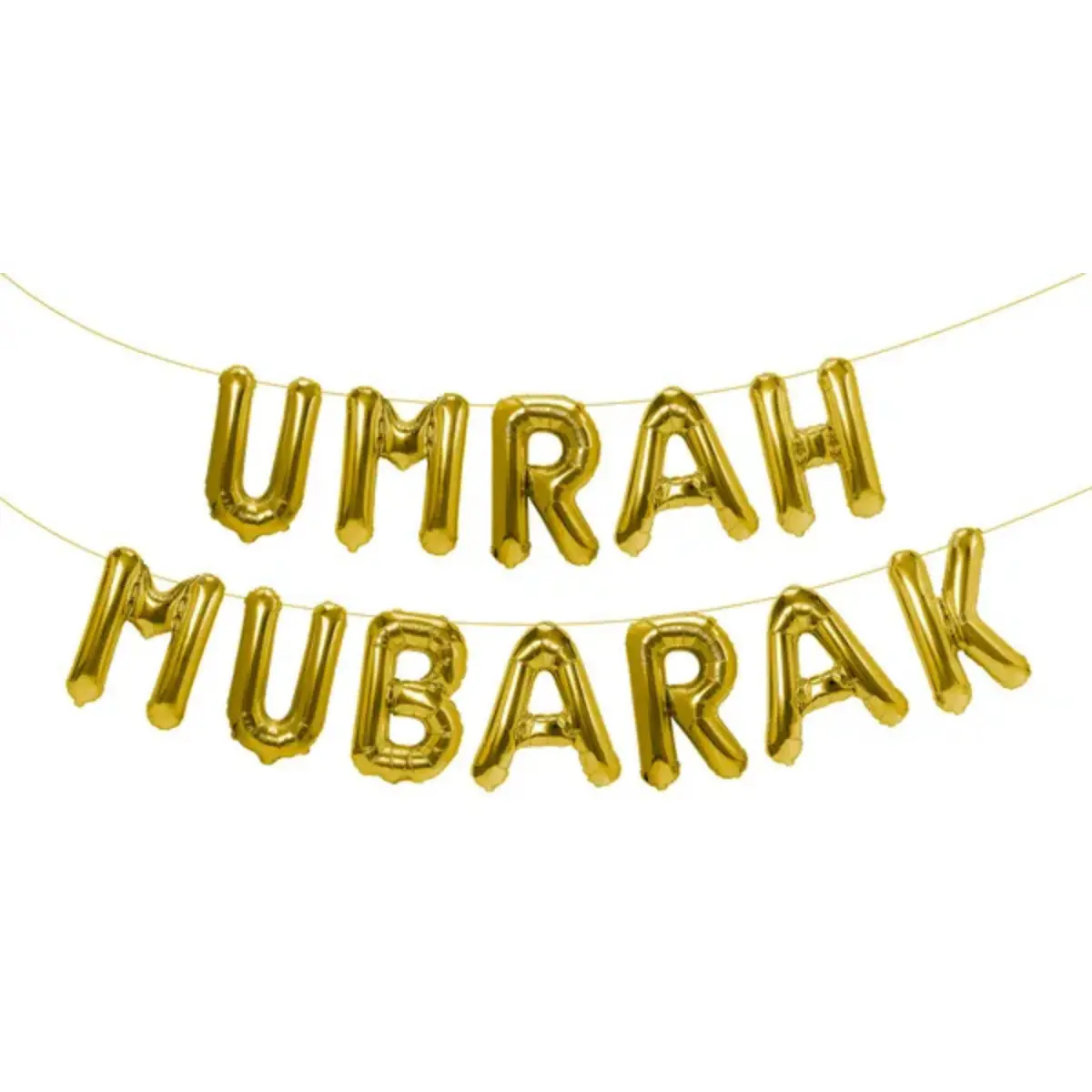 11 lettres à gonfler pour former « Umra Mubarak », de couleur or.