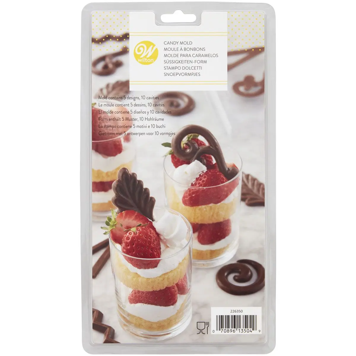 Ce moule Candy Mold vous permet de créer des spirales, des volutes, des zigzags, des triangles et des feuilles pour peaufiner la décoration de vos desserts glacés, vos cupcakes ou votre gâteau.
