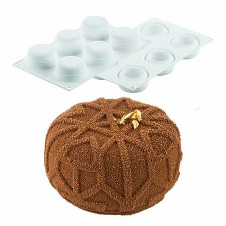 Un moule inspiré de l’architecture orientale avec une décoration originale faite de lignes fines. Les portions individuelles réalisées avec le moule Mistery95 seront parfaites avec une décoration en velours.