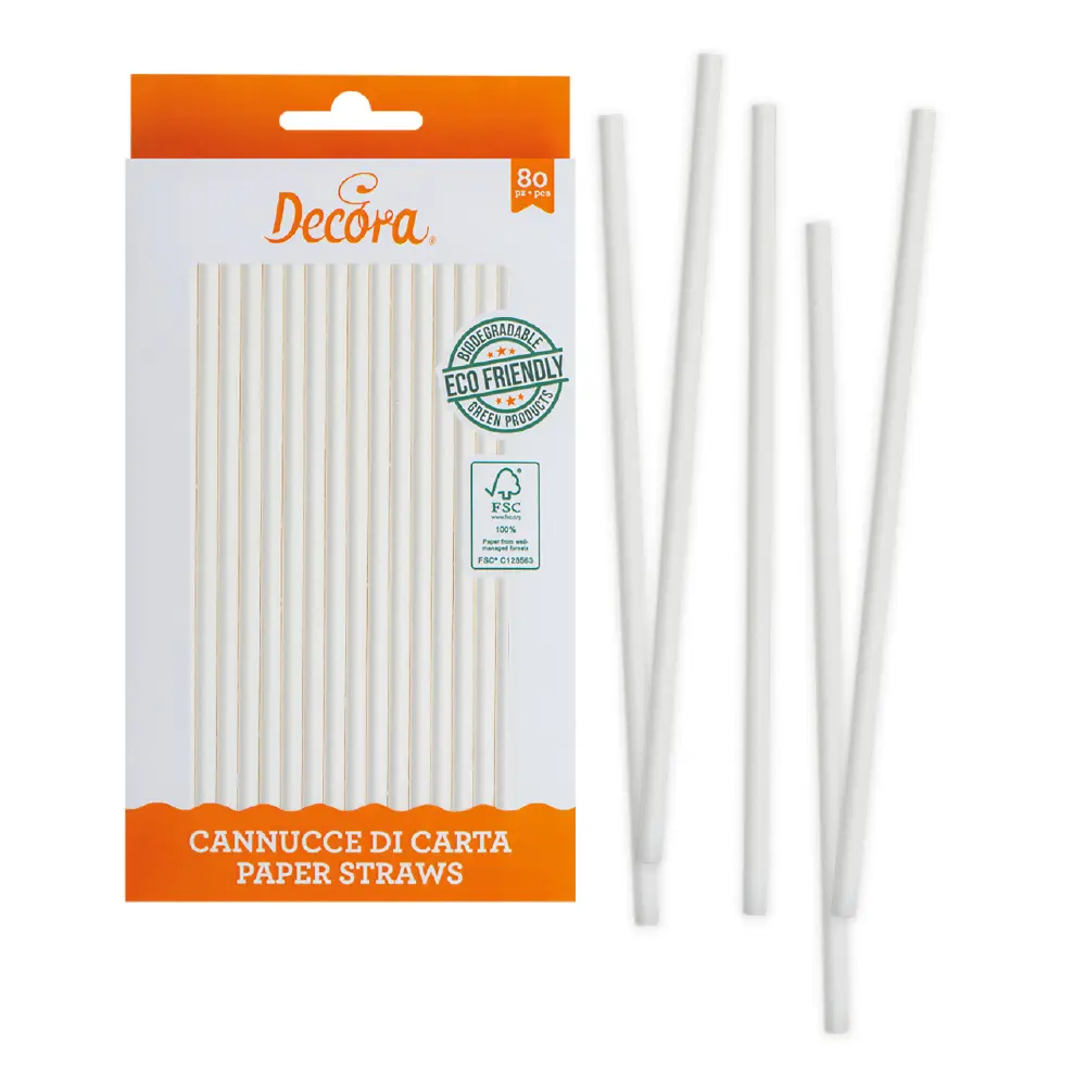Accueil Présentoir et emballage Bâtons à sucette Pailles blanches x80 Decora