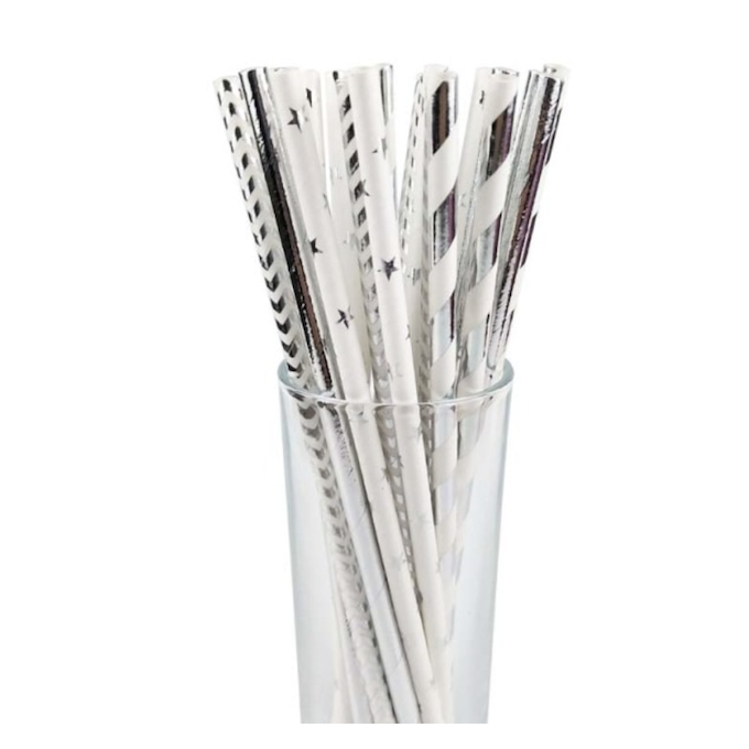 Accueil Décoration de fête Assiettes, gobelets & serviettes Pailles en papier Argent x20