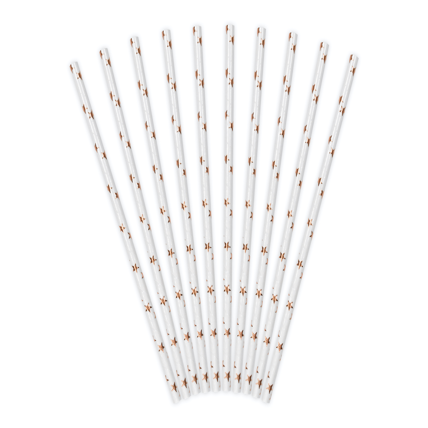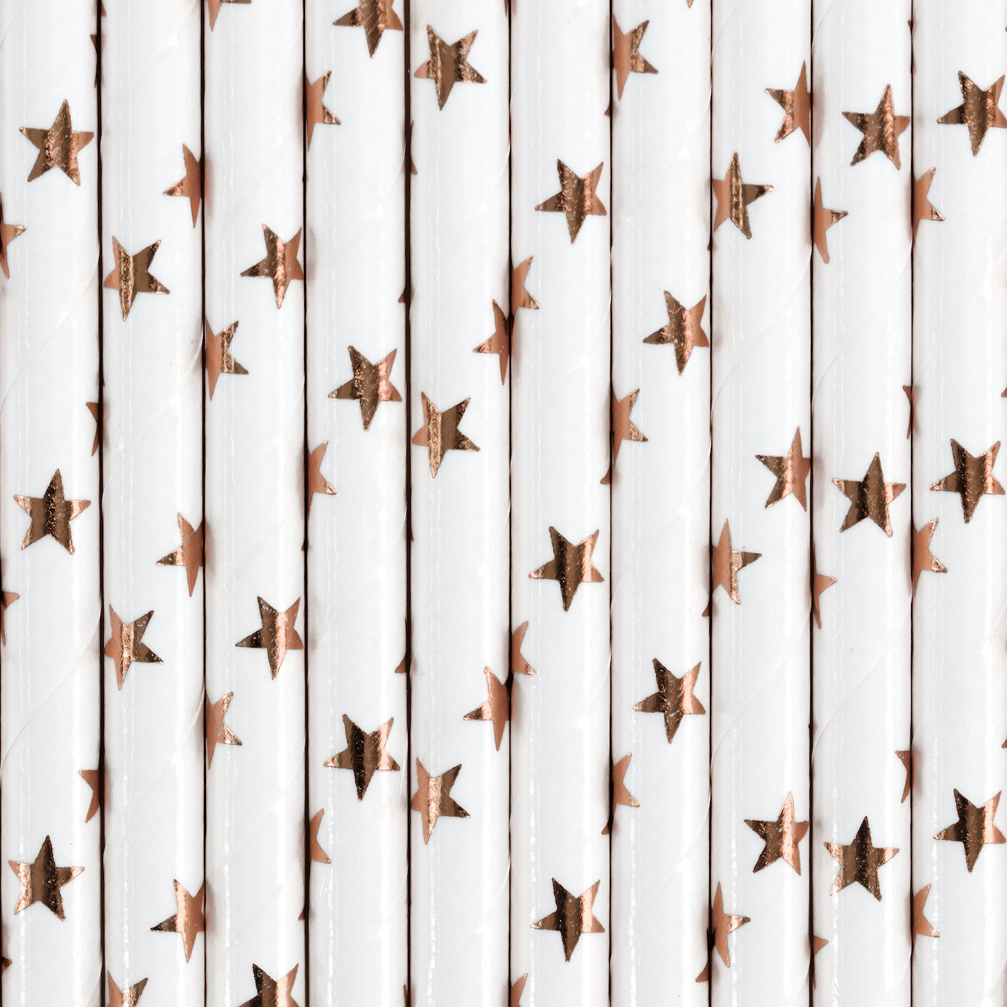 Pailles en papier de couleur blanche avec des étoiles métallisées de couleur or rose clair.