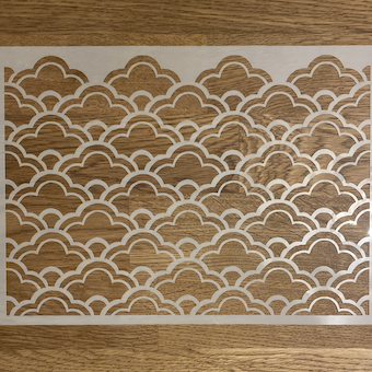 2. Fixez et stabilisez le pochoir, il est possible de le tenir avec une main ou de le tenir avec des epigneles ou scotch.