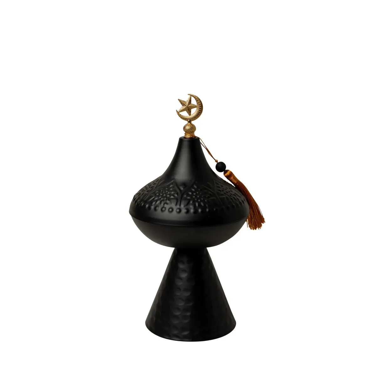 • Design : Couvercle orné de décorations orientales dorées et pompon