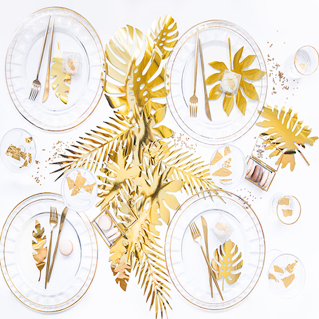 Décorations feuilles tropicales Or Aloha