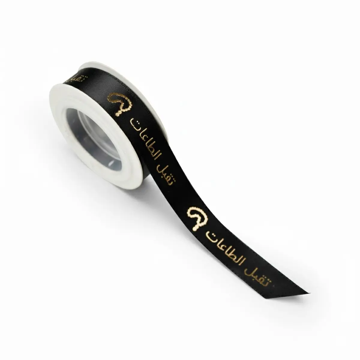 Petite boîte cadeau Omra Hajj transparente avec ruban doré et inscription, idéale pour dattes et petits cadeaux de retour de pèlerinage.