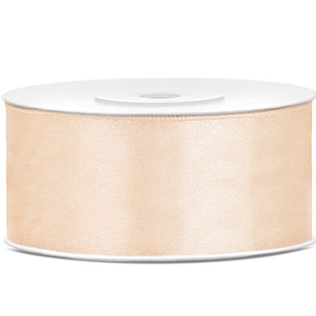 Ruban de satin de couleur crème, largeur 25 millimètres, longueur 25 mètres.