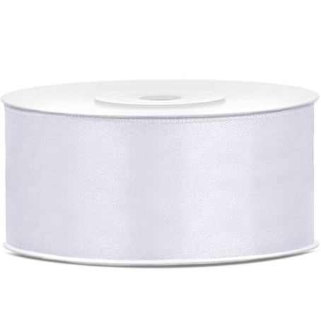 Ruban de satin blanc, largeur 25 millimètres, longueur 25 mètres.