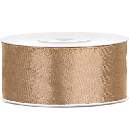 Ruban de satin de couleur or clair, largeur 25 millimètres, longueur 25 mètres.