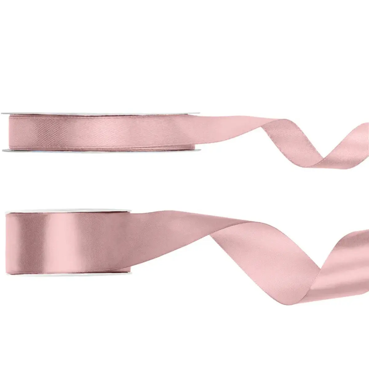 Ruban satin, rose poudré clair, longueur 25 mètres.