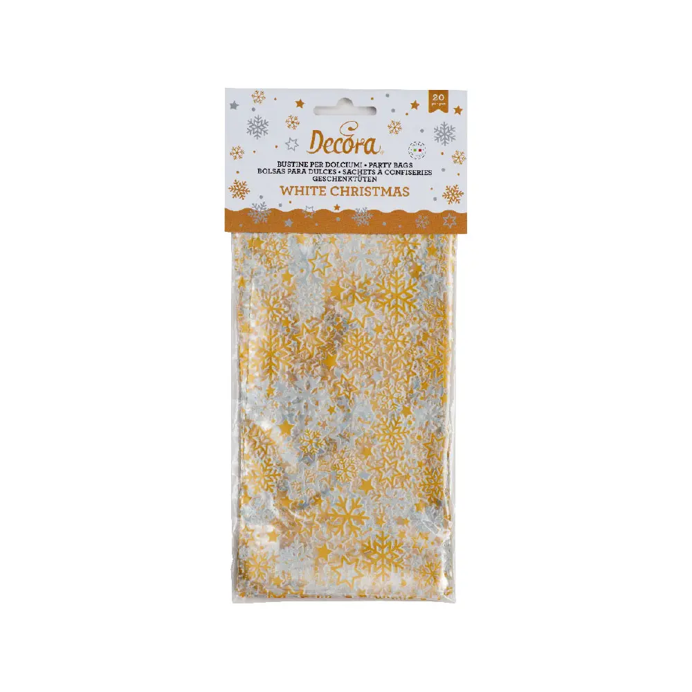 Accueil Thèmes Bûches et Entremets Sachets pour biscuit Blanc et Or Flocons