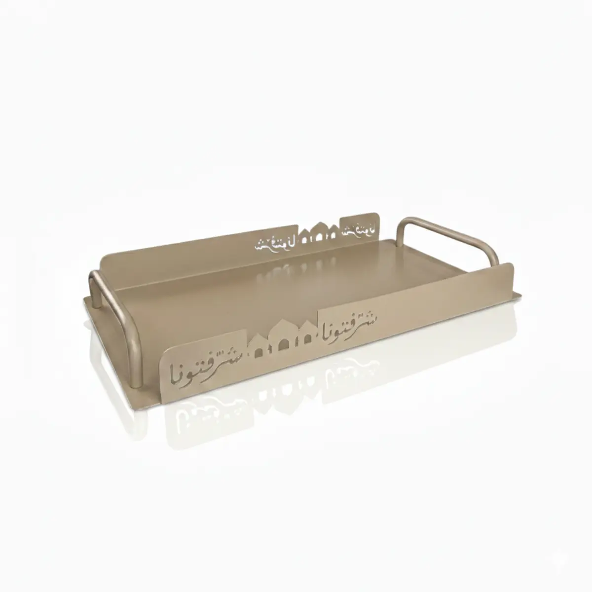 décoration orientale à poser avec plaque motif moucharabieh et écriture dorée "Ramadan Mubarak" -Perle Dorée
