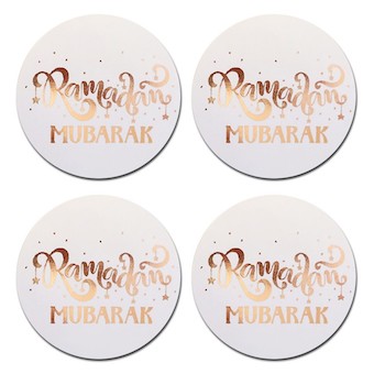 Accueil Thèmes Ramadan Art de la table, Serviettes & Boites Stickers or/blanc Ramadan Mubarak x10