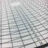 Tapis de travail pour mesurer, étendre, et couper le fondant, la pâte d’amandes, ou la pâte. Grâce aux cercles et lignes marqués préalablement il est très facile de trouver la mesure correcte et de la couper.