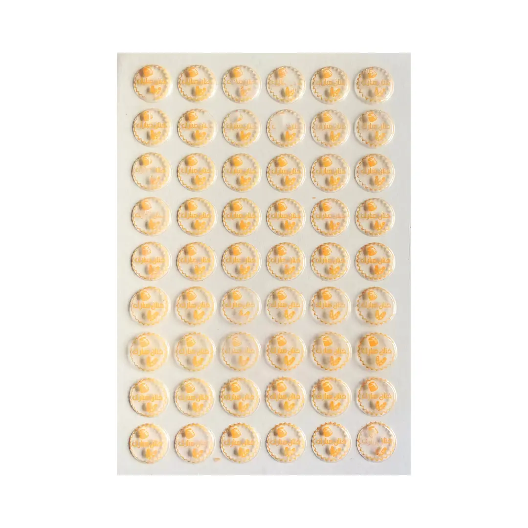 Les empreintes de transfert chocolat Khittan Mubarak au ton jaune orangé sont des feuilles PVC recouvertes d’une fine couche de beurre de cacao.