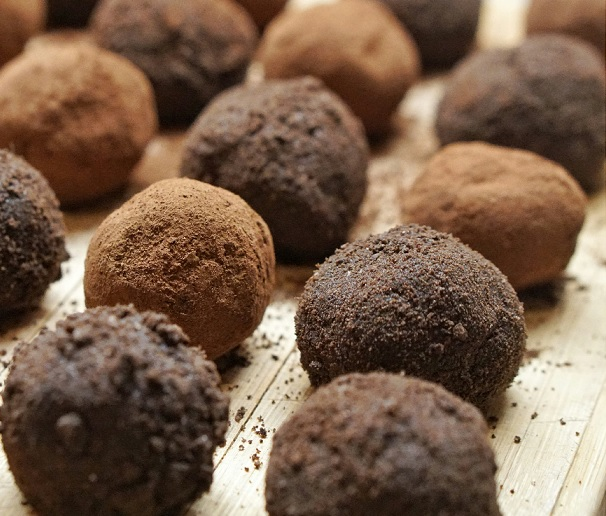 Etape 5 : Formez des boules avec les mains et roulez chaque truffe dans le cacao en poudre.